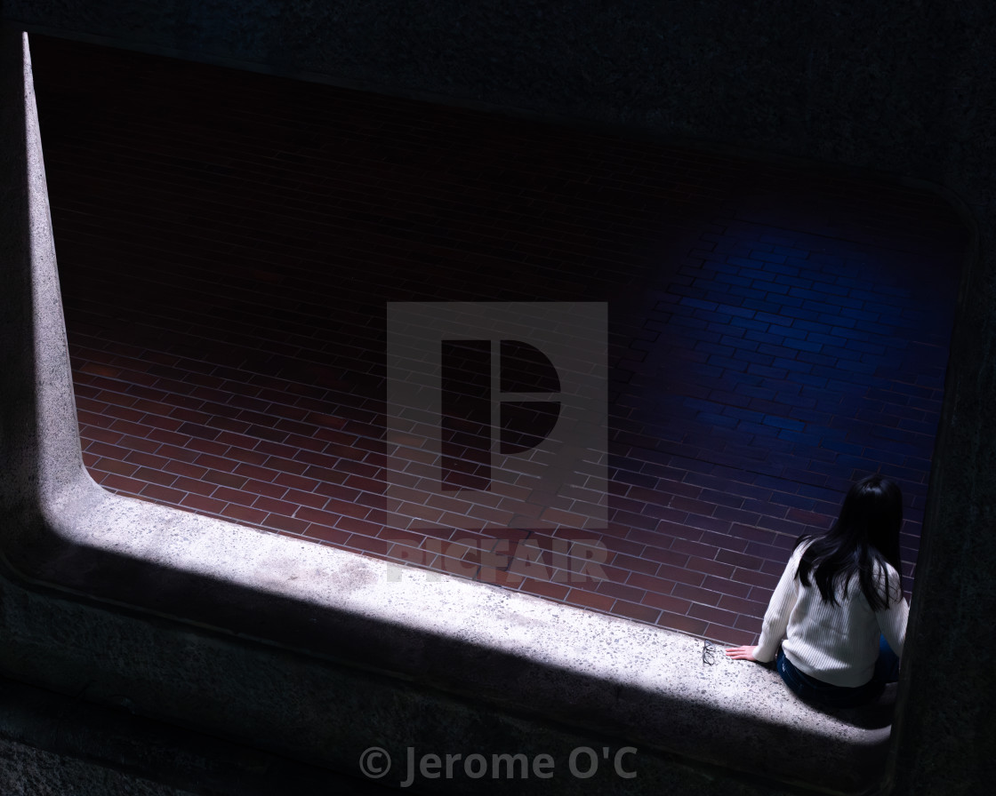 A lady sits on the ledge at the Barbican Centre, London. Jan 2026